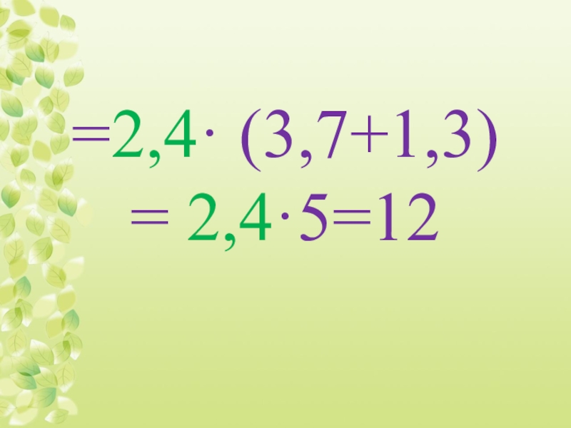 Слайд 10=2,4· (3,7+1,3) = 2,4·5=12