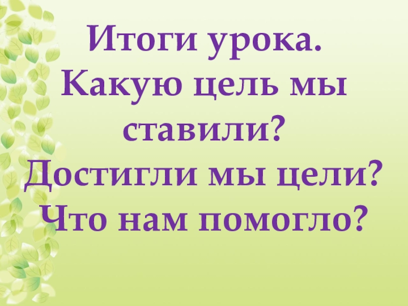 Итоги урока. Какую цель мы ставили? Достигли мы цели? Что нам помогло?