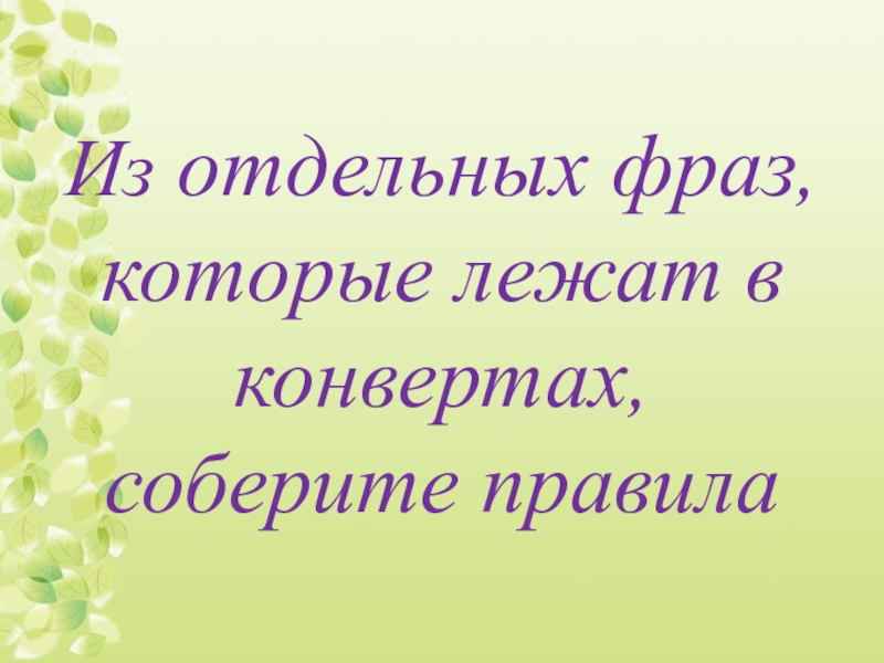 Слайд 3Из отдельных фраз, которые лежат в конвертах, соберите правила