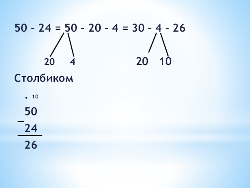 Слайд 650 – 24 = 50 – 20 – 4 = 30