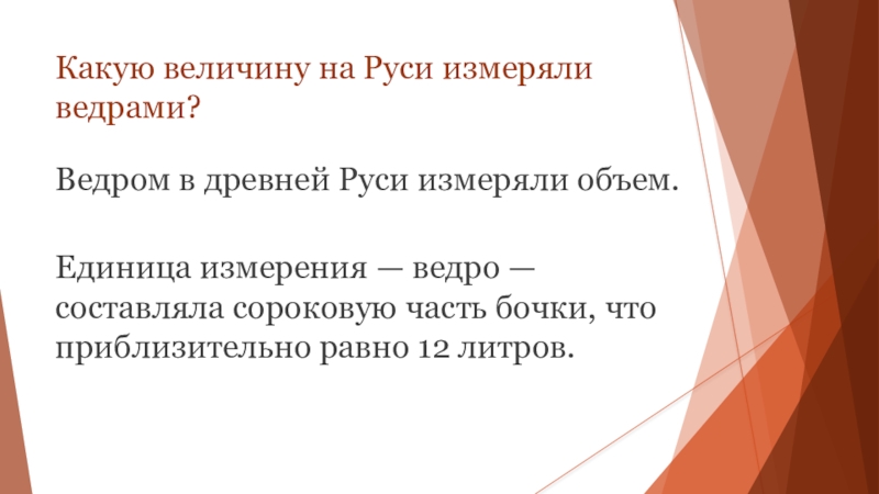 Слайд 2Какую величину на Руси измеряли ведрами?