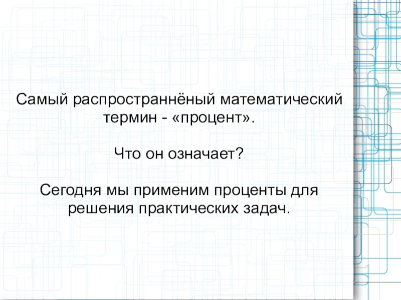 Самый распространнёный математический термин - «процент».Что он означает?Сегодня мы применим проценты для решения практических задач.