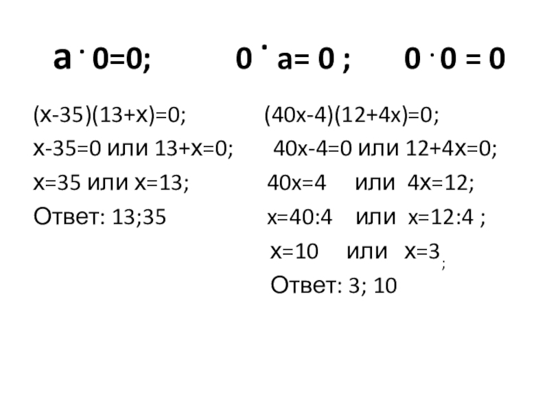 х-35=0 или 13+х=0; 40x-4=0 или 12+4х=0;