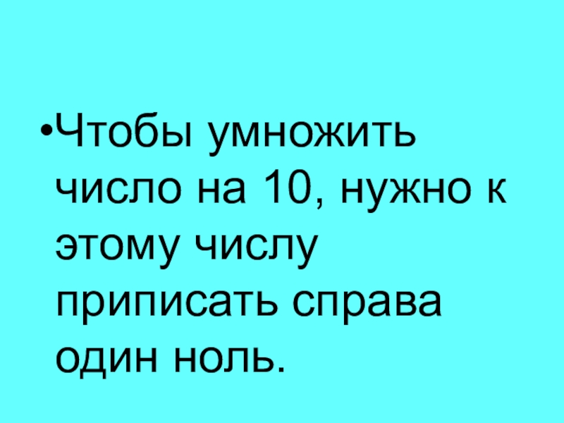 Чтобы умножить число на 10, нужно к этому числу приписать справа один ноль.