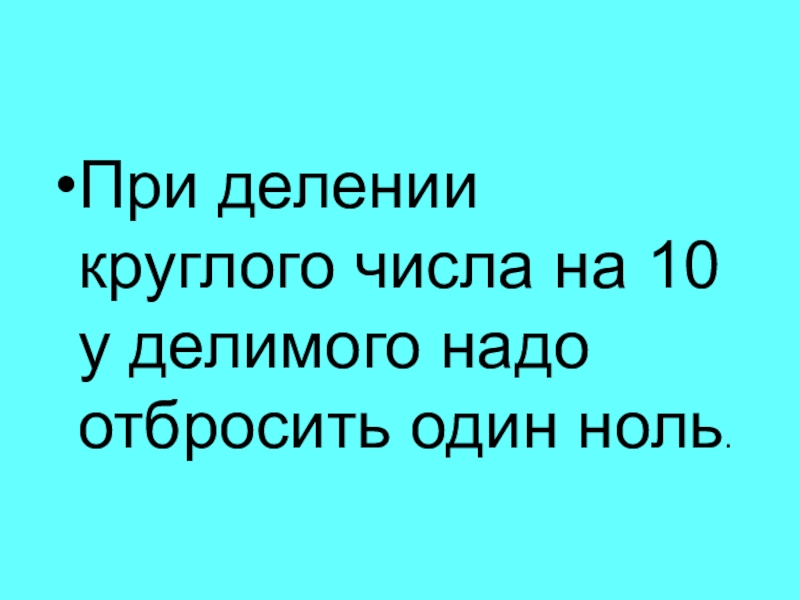 При делении круглого числа на 10 у делимого надо отбросить один ноль.