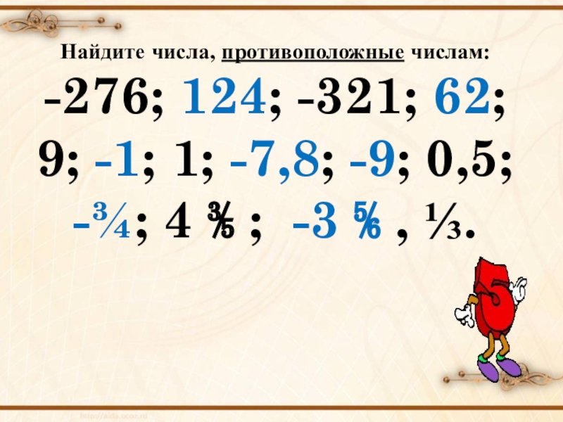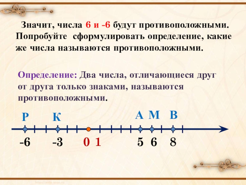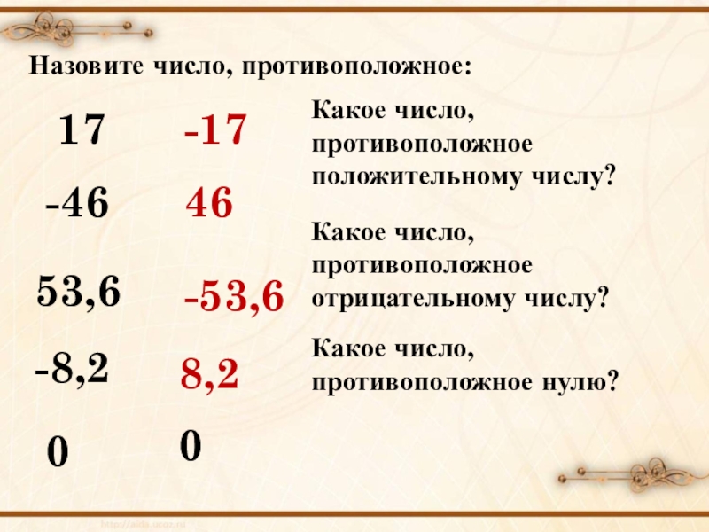 Определение: Два числа, отличающиеся друг от друга только знаками, называются противоположными.