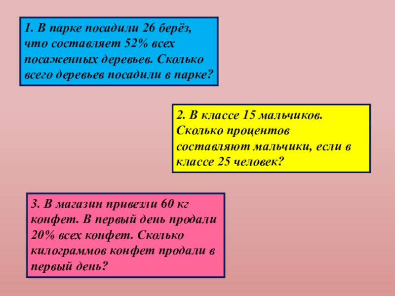 2. В классе 15 мальчиков. Сколько процентов составляют мальчики, если в классе 25 человек?