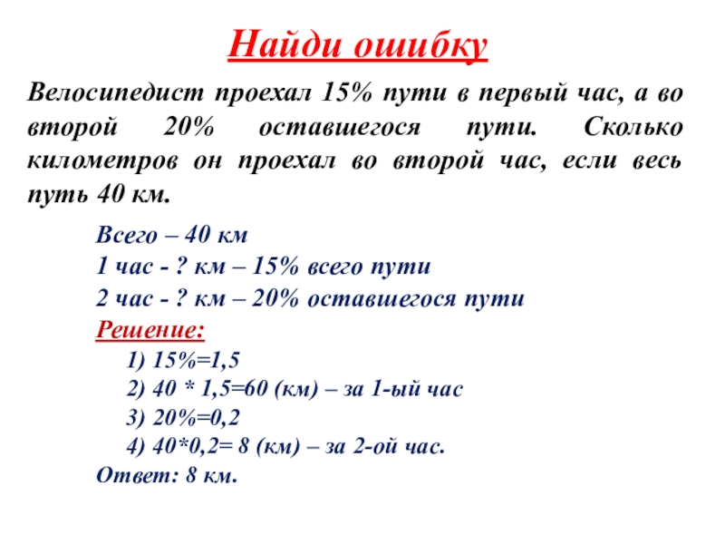 4) 40*0,2= 8 (км) – за 2-ой час.