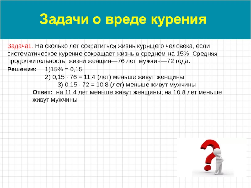 2) 0,15 ∙ 76 = 11,4 (лет) меньше живут женщины