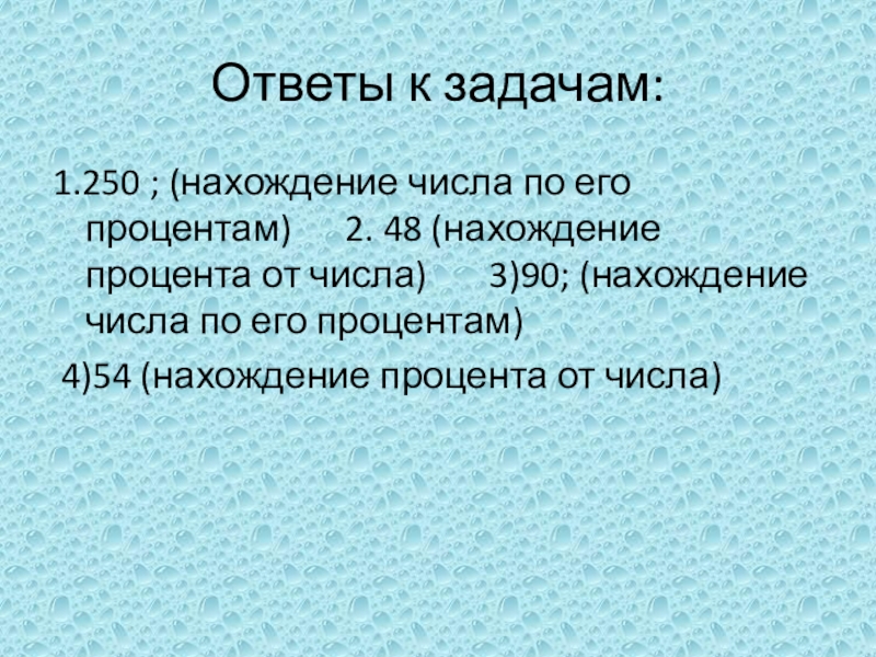 2. 48 (нахождение процента от числа) 3)90; (нахождение числа по его процентам)
