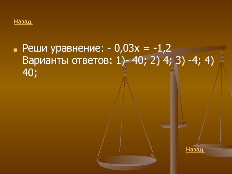 Разделить число в правой части уравнения на коэффициент при переменной.