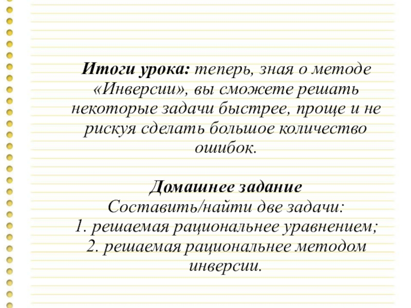 Слайд 9Итоги урока: теперь, зная о методе «Инверсии», вы сможете решать некоторые
