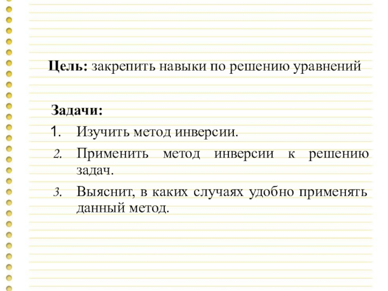 Слайд 2Цель: закрепить навыки по решению уравнений