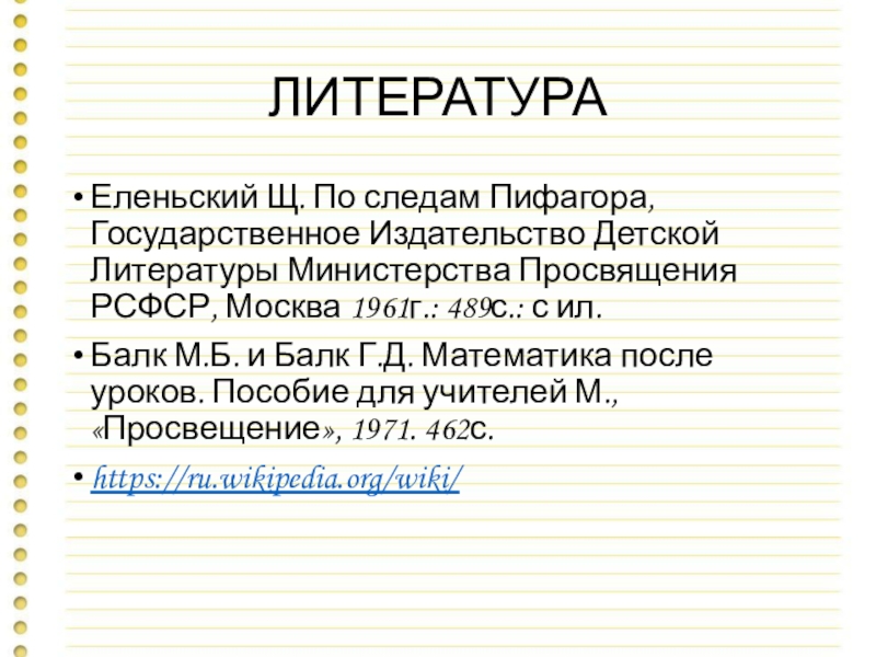 Балк М.Б. и Балк Г.Д. Математика после уроков. Пособие для учителей М., «Просвещение», 1971. 462с.