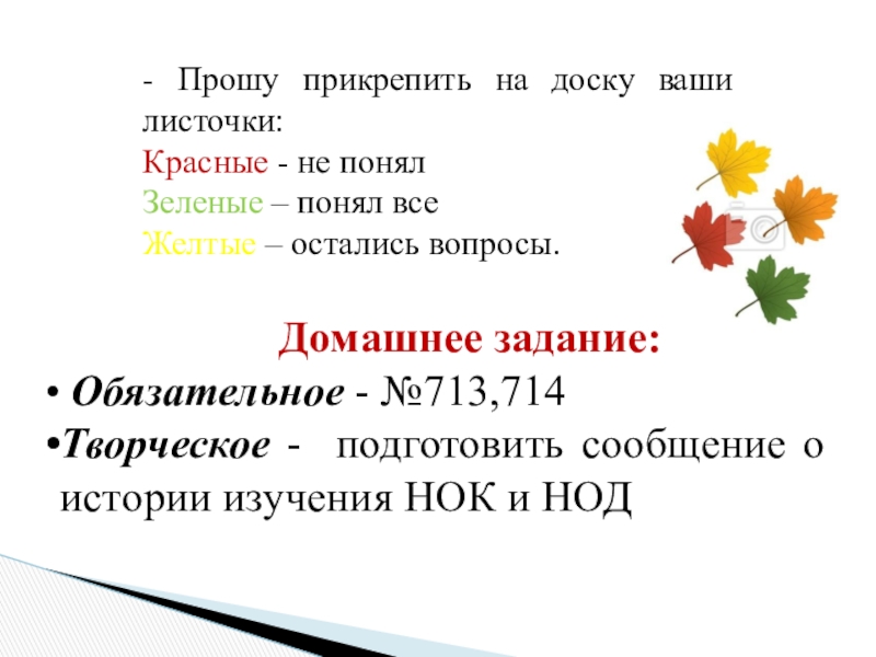 Творческое - подготовить сообщение о истории изучения НОК и НОД