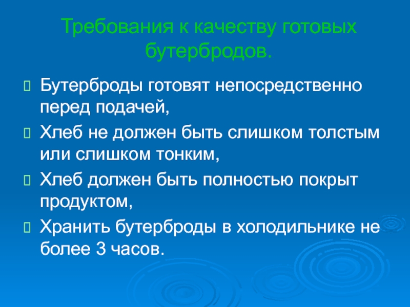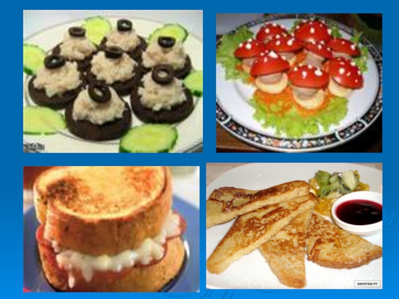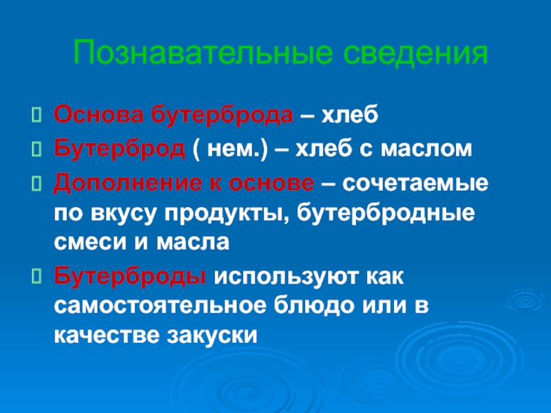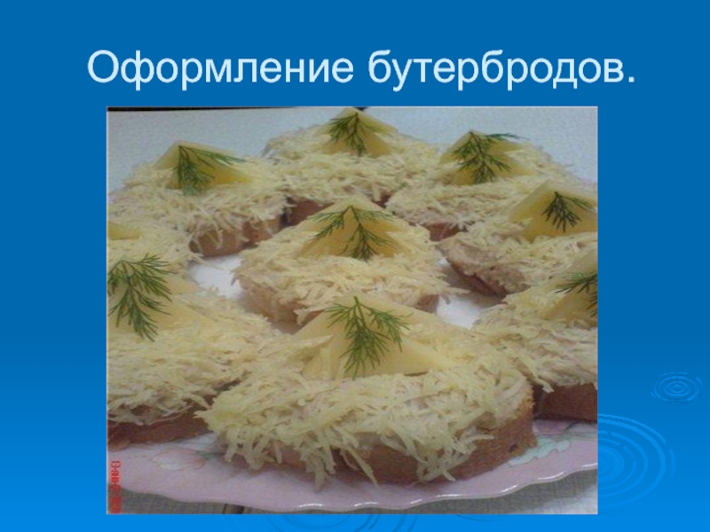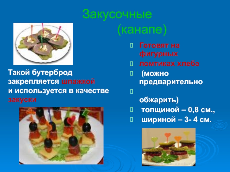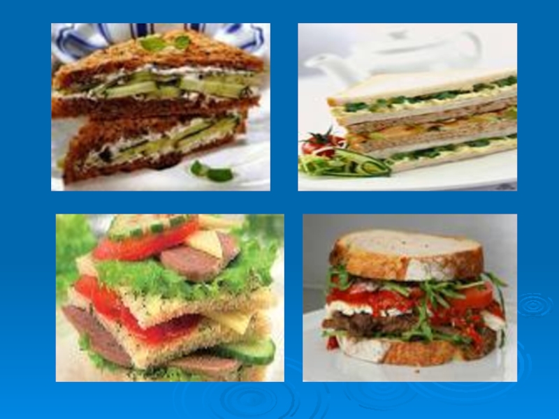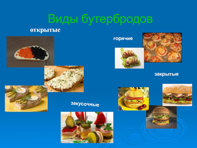 Для простых открытых бутербродов используют 1 -2 вида продуктов;