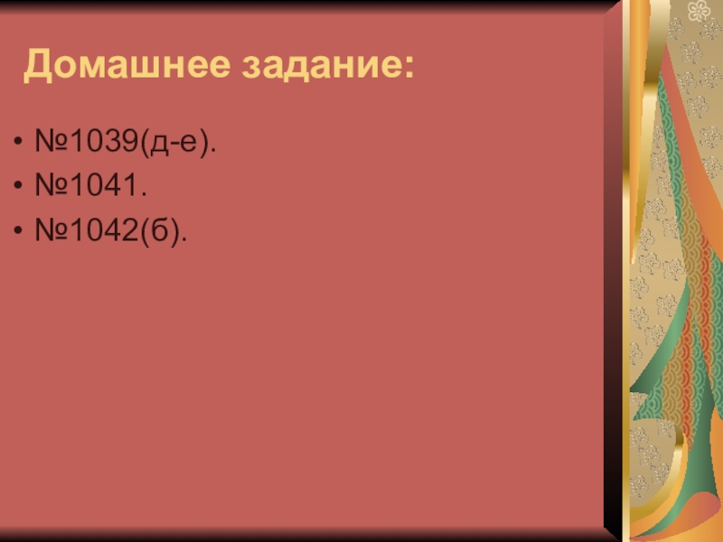 Домашнее задание:№1039(д-е).№1041.№1042(б).