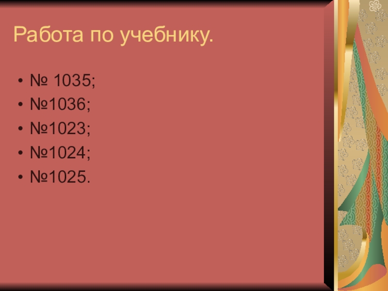Работа по учебнику.№ 1035;№1036;№1023;№1024;№1025.