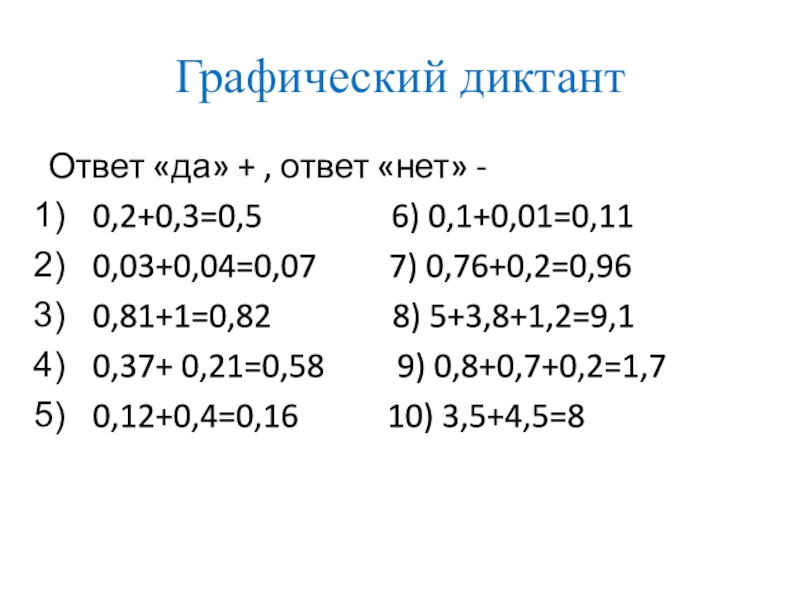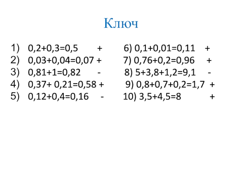 0,2+0,3=0,5 + 6) 0,1+0,01=0,11