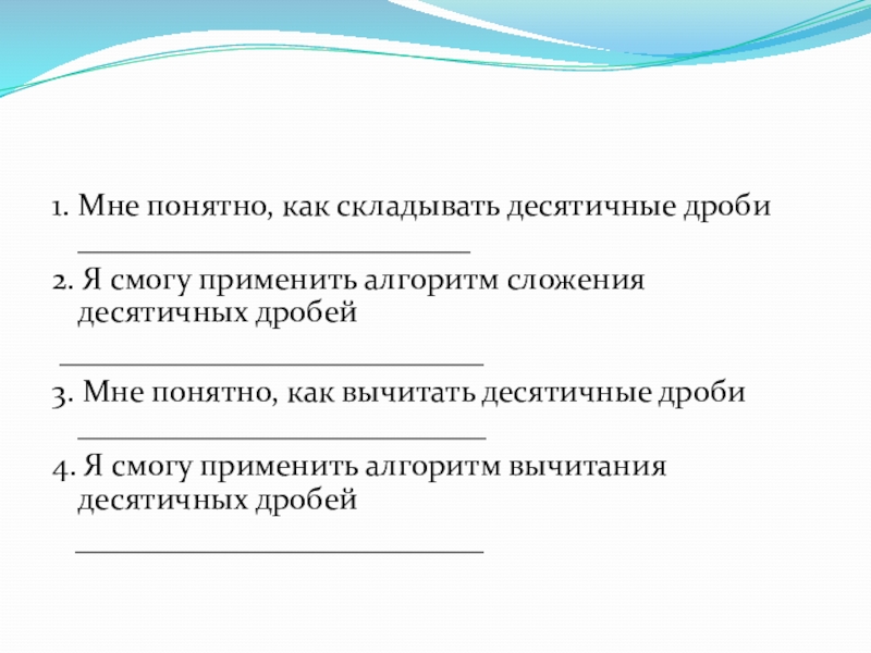 Слайд 131. Мне понятно, как складывать десятичные дроби _________________________