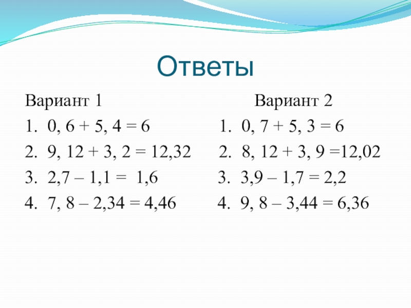 4. 7, 8 – 2,34 = 4,46 4. 9, 8 – 3,44 = 6,36