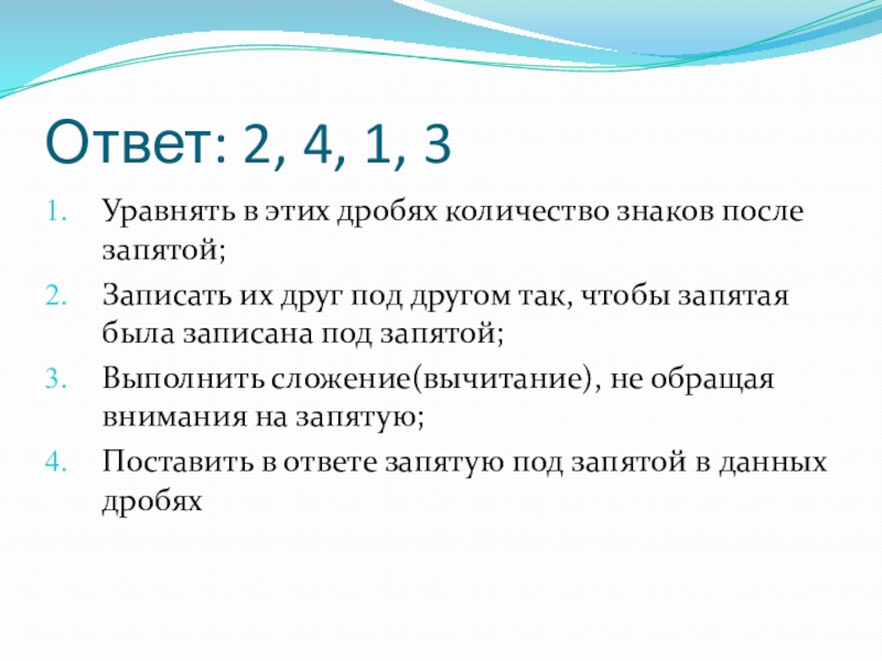 Поставить в ответе запятую под запятой в данных дробях.