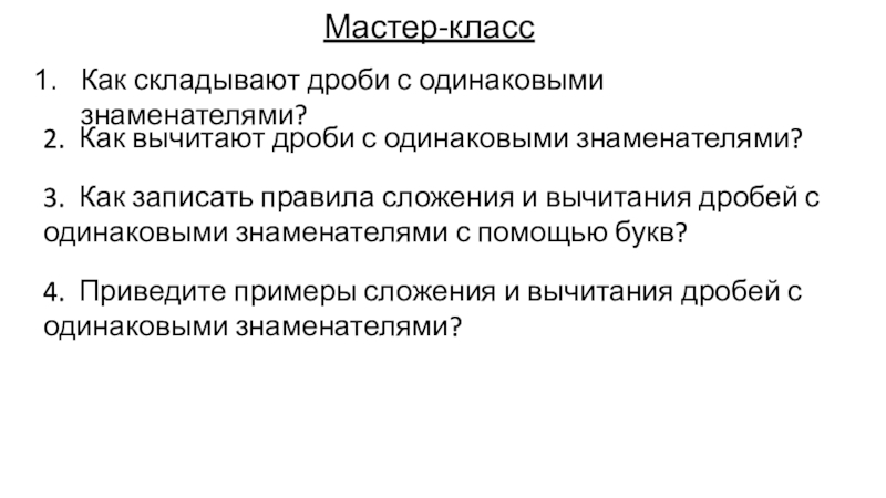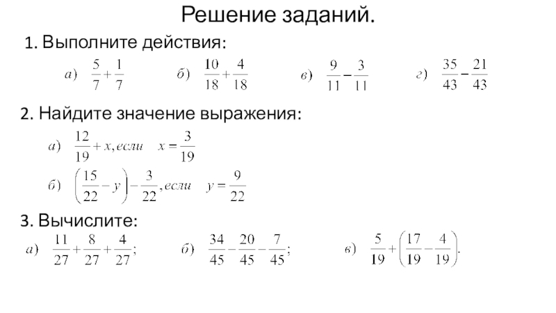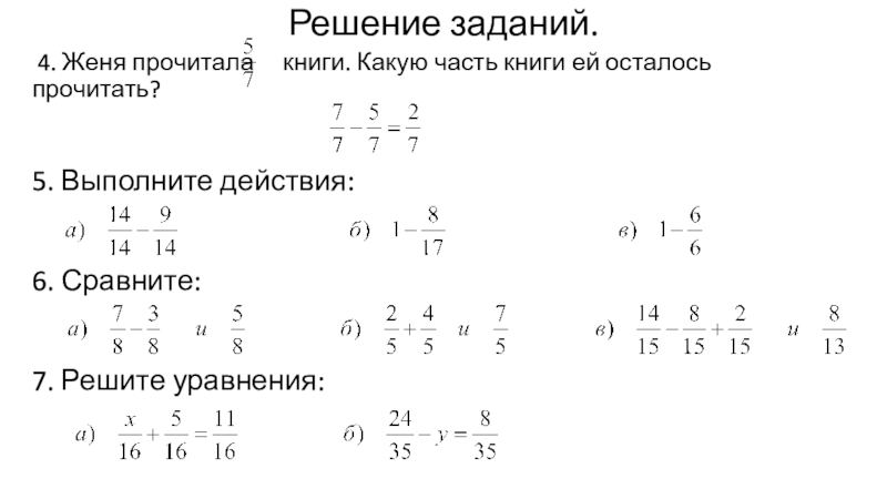 4. Приведите примеры сложения и вычитания дробей с одинаковыми знаменателями?