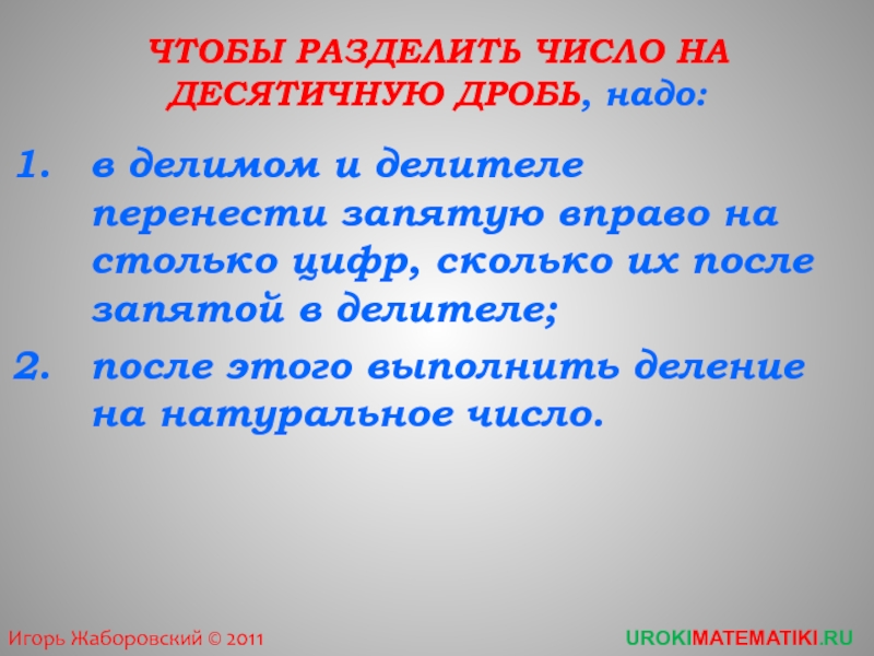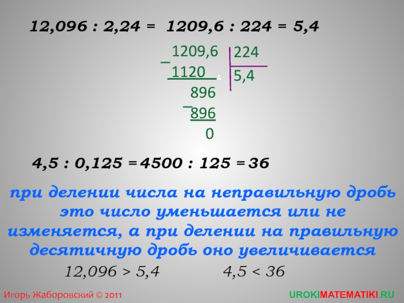 при делении числа на неправильную дробь это число уменьшается или не изменяется, а при делении на правильную десятичную дробь оно увеличивается