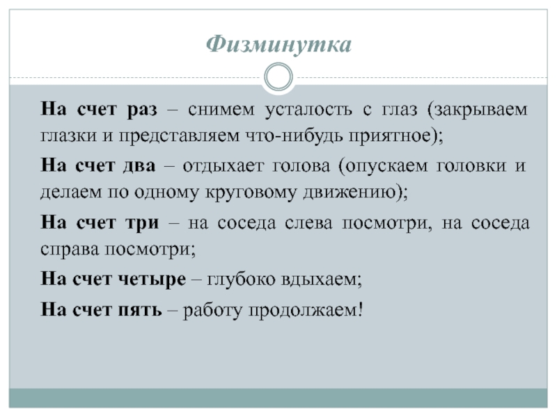 На счет раз – снимем усталость с глаз (закрываем глазки