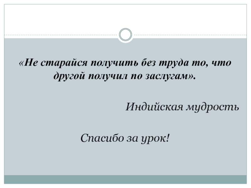 «Не старайся получить без труда то, что другой получил по заслугам».