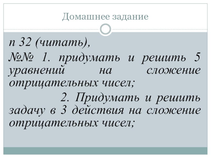 2. Придумать и решить задачу в 3 действия на сложение отрицательных чисел;