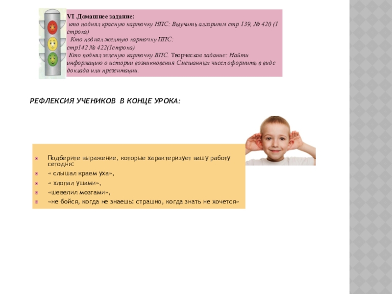 Кто поднял зеленую карточку ВПС. Творческое задание: Найти информацию о истории возникновения Смешанных чисел оформить в виде доклада или презентации.