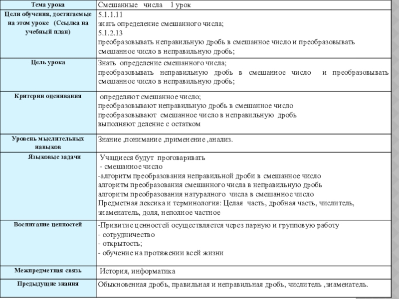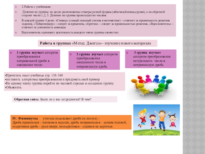 1 группа изучает алгоритм преобразования неправильной дроби в смешанное число