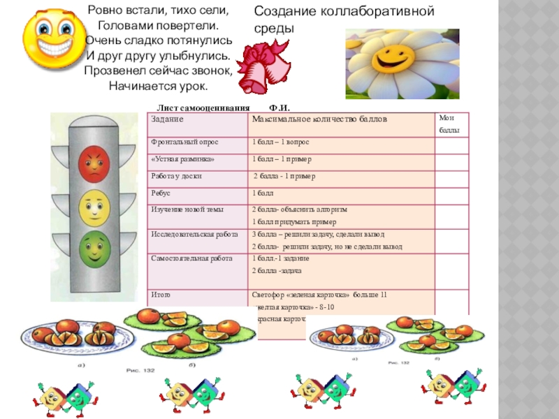 Считаем баллы в листе самооценивания и поднимаем карточку соответствующего цвета