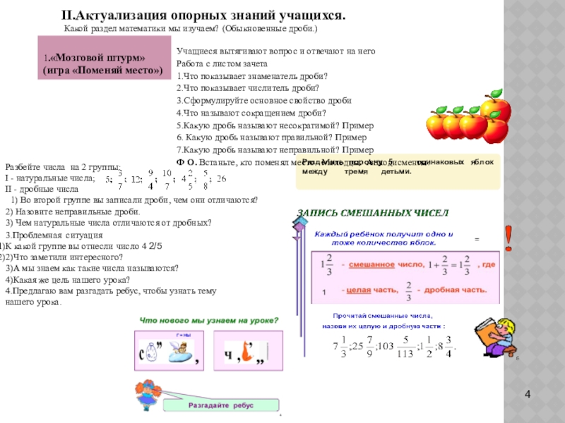 2 группа изучает алгоритм преобразования смешанного числа в неправильную дробь