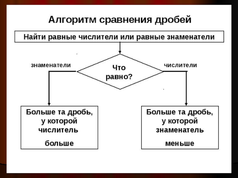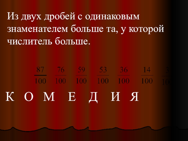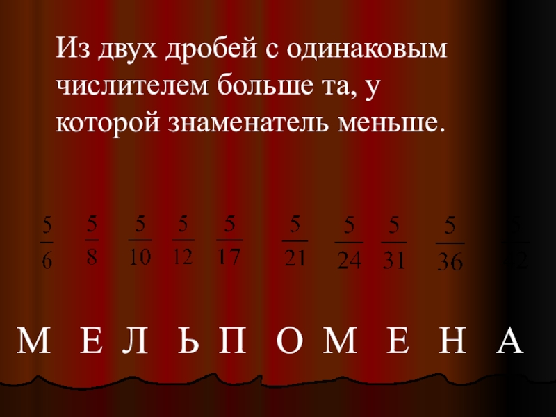 Слайд 9Из двух дробей с одинаковым числителем больше та, у которой знаменатель