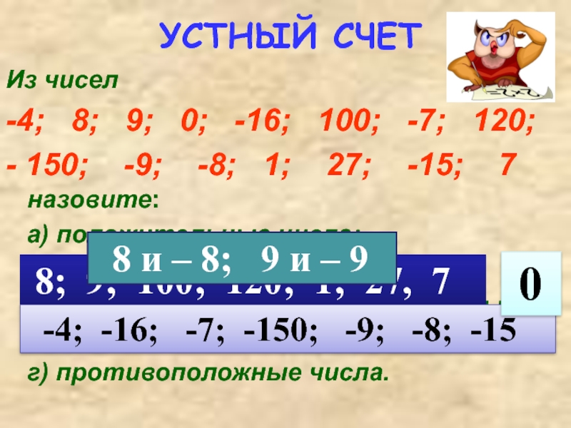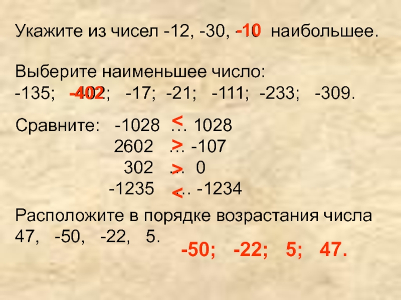 Расположите в порядке возрастания числа 47, -50, -22, 5.