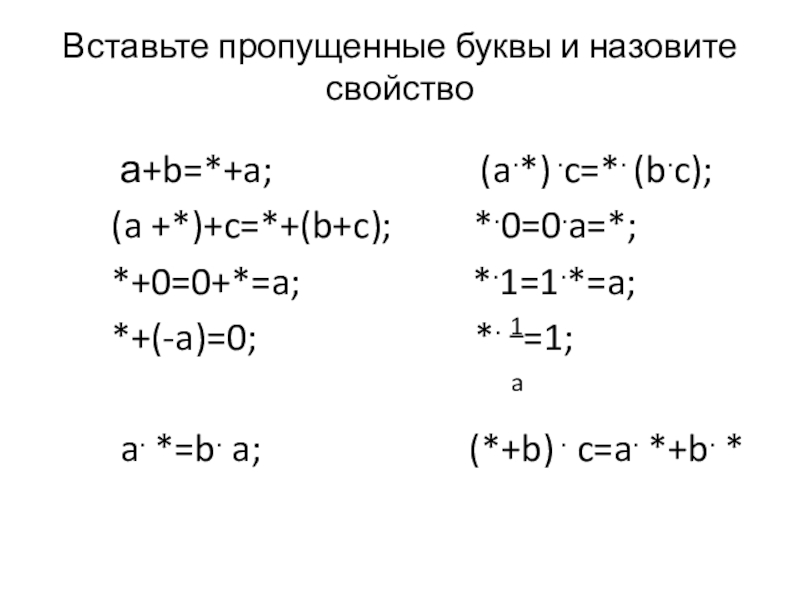 Вставьте пропущенные буквы и назовите свойство     а+b=*+a;