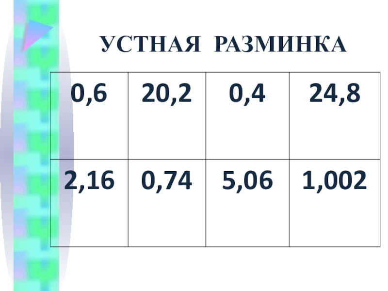 ЦЕЛЬ УРОКА:Повторить и закрепить знания по темам: чтение и запись десятичных дробей, округление и сложение.