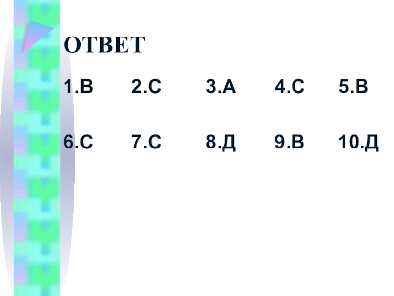 ОТВЕТ1.В    2.С    3.А    4.С   5.В6.С