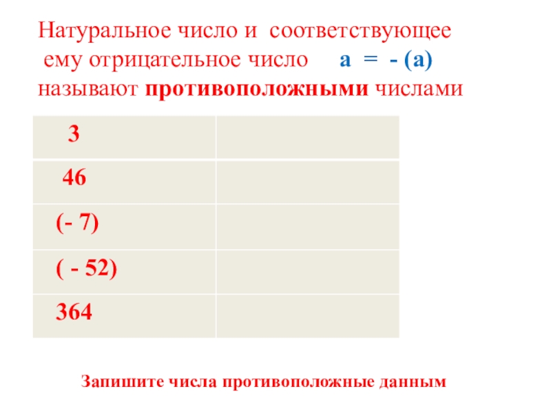 Запишите числа противоположные данным