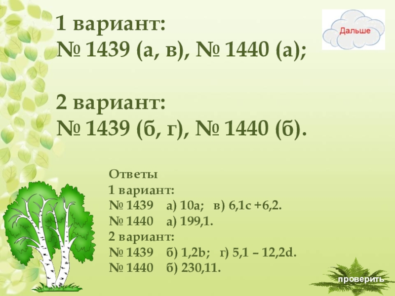 № 1439 а) 10а; в) 6,1с +6,2.