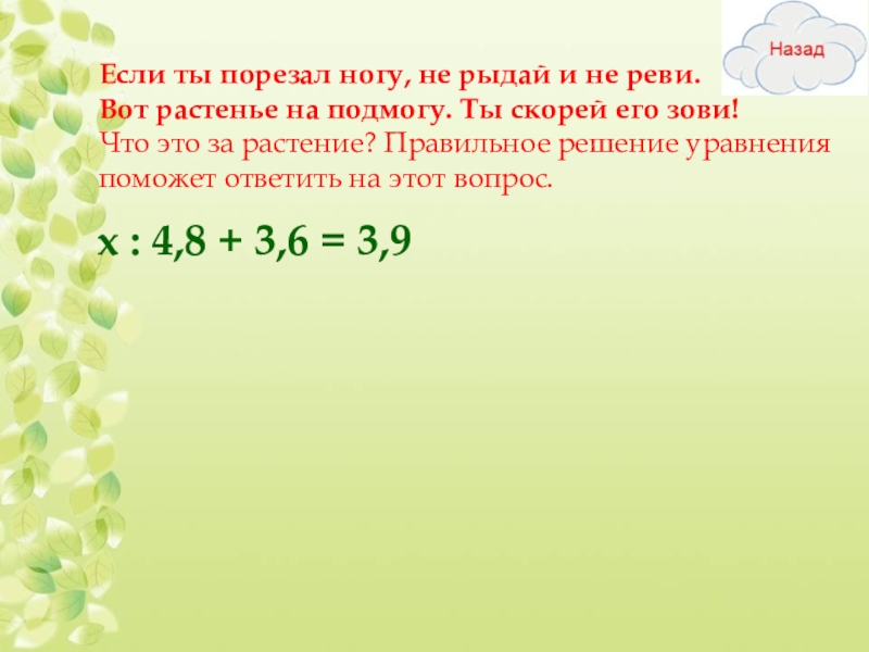 х : 4,8 + 3,6 = 3,9