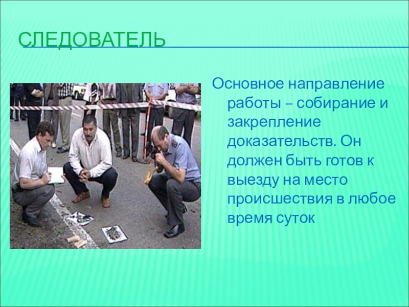 Основное направление работы – собирание и закрепление доказательств. Он должен быть