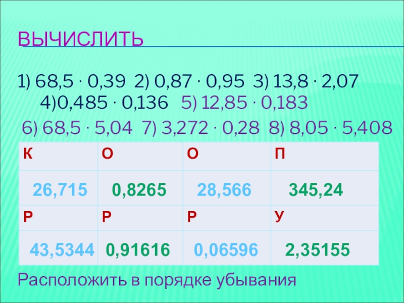 Слайд 1УМНОЖЕНИЕ ДЕСЯТИЧНЫХ ДРОБЕЙ