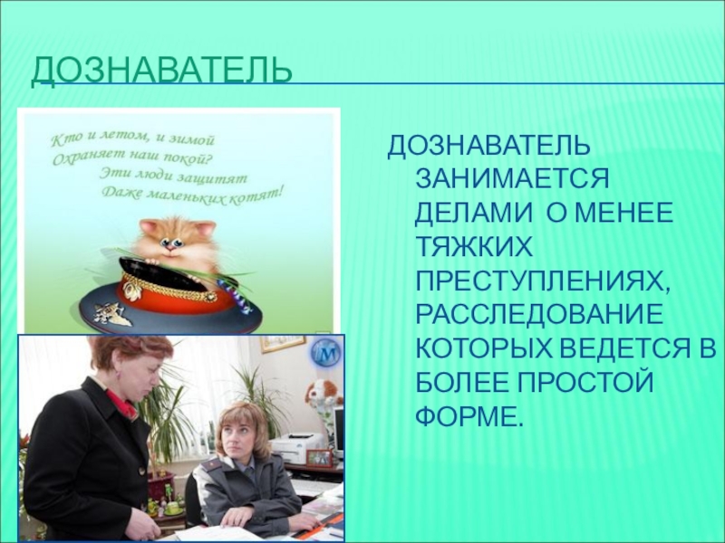 ДОЗНАВАТЕЛЬ ЗАНИМАЕТСЯ ДЕЛАМИ О МЕНЕЕ ТЯЖКИХ ПРЕСТУПЛЕНИЯХ, РАССЛЕДОВАНИЕ КОТОРЫХ ВЕДЕТСЯ В