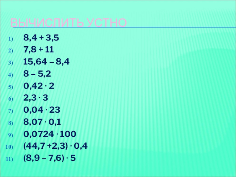 Слайд 4ВЫЧИСЛИТЬ УСТНО