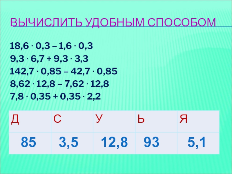 Слайд 14ВЫЧИСЛИТЬ УДОБНЫМ СПОСОБОМ