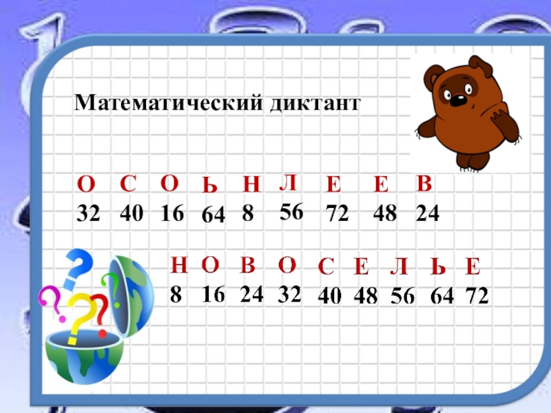 7 . 8 = 56 - О