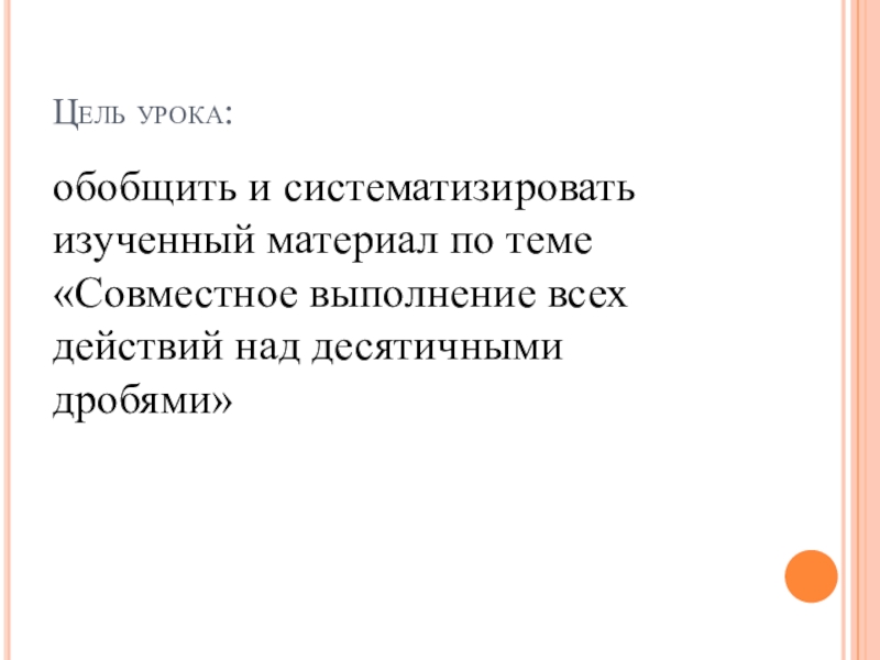 обобщить и систематизировать изученный материал по теме «Совместное выполнение всех